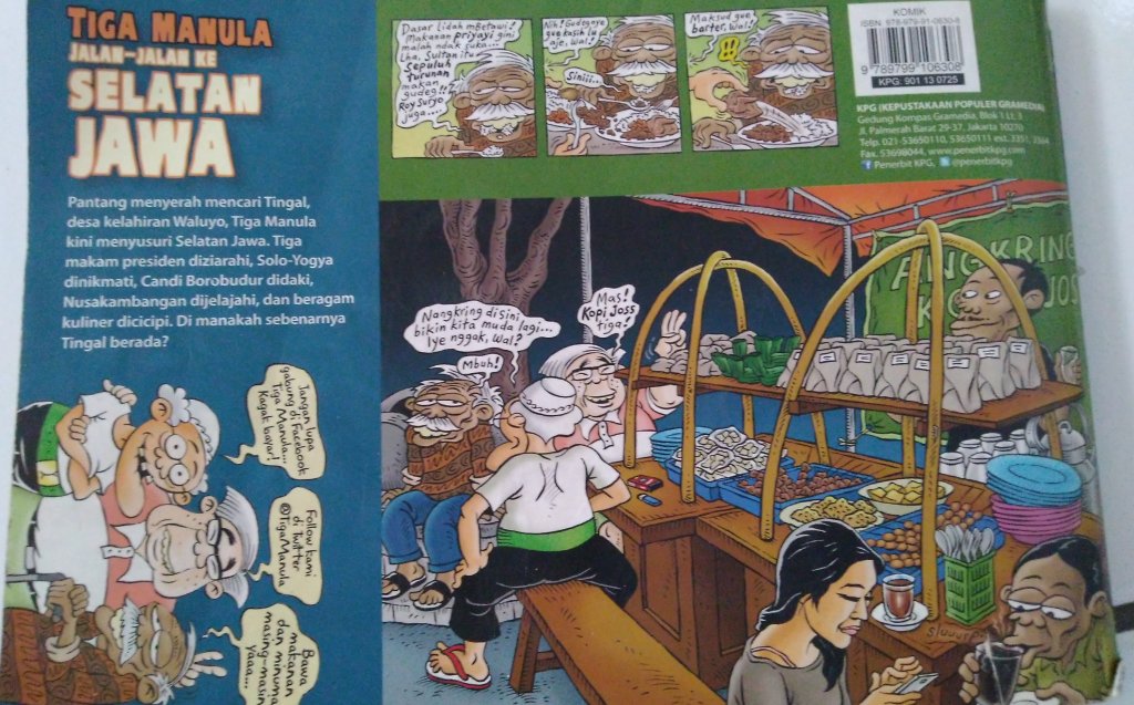 Judul Buku : Tiga Manula Jalan-jalan ke Selatan Jawa halaman : 108 halaman Penerbit Buku : kepustakaan populer Gramedia (KPG) Dicetak oleh: PT Gramedia, Jakarta