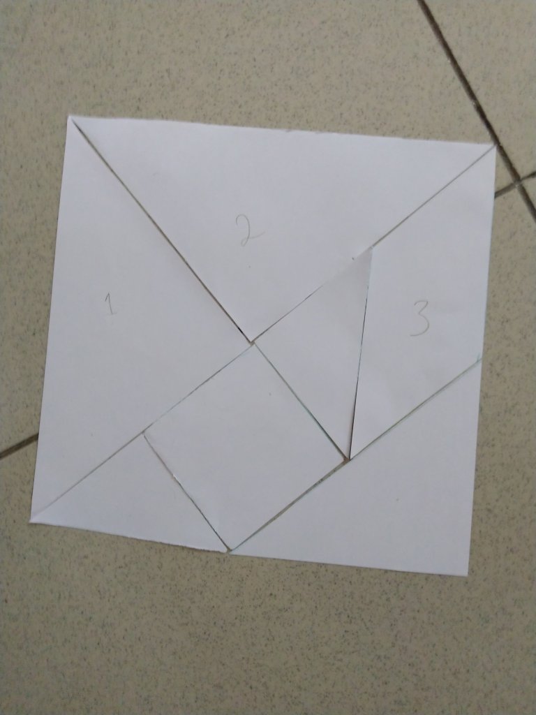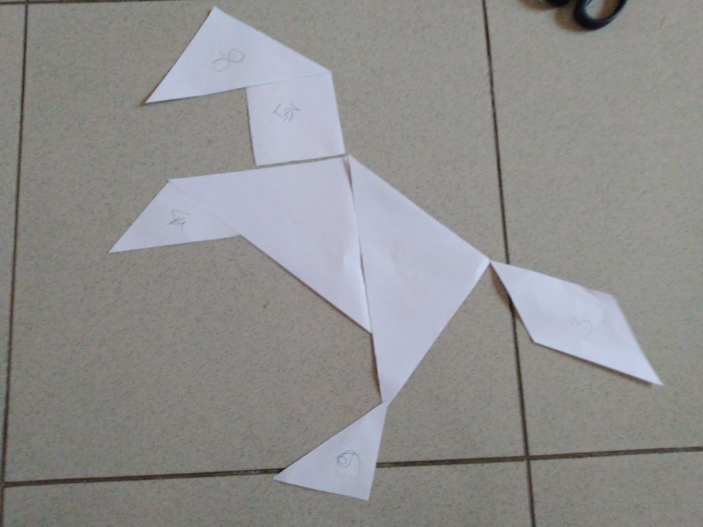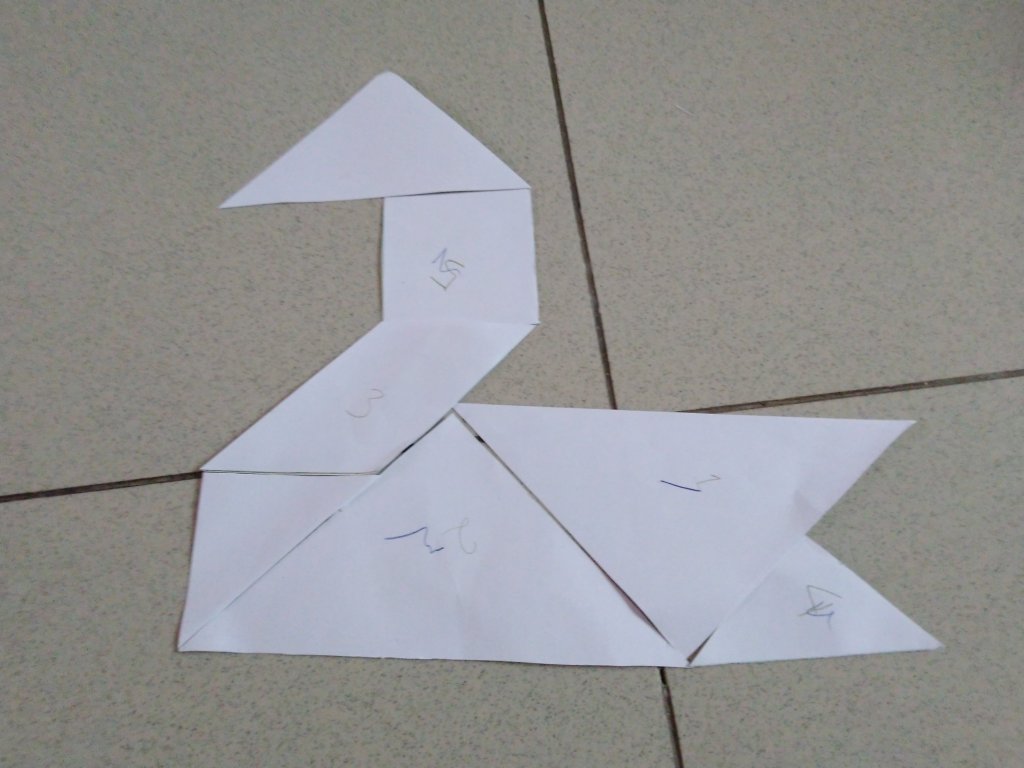 Tangram adalah teka-teki pembedahan yang terdiri dari tujuh bentuk datar, yang disebut tan, yang disatukan untuk membentuk bentuk. Tujuan dari teka-teki ini adalah untuk membentuk bentuk tertentu menggunakan ketujuh bagian, Wikipedia
