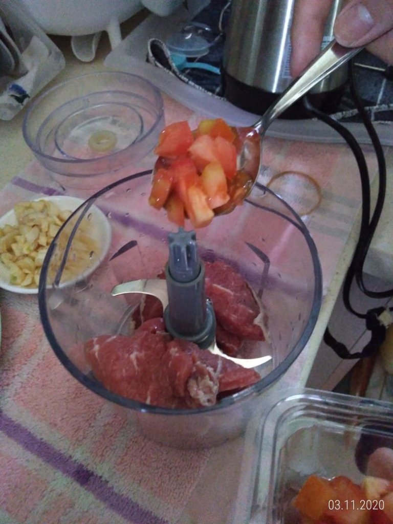– Memblender daging untuk digabungkan dalam isian lasagna nanti